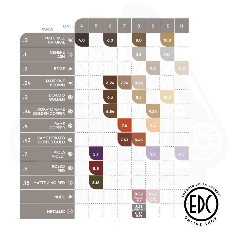 Colori Scuri Disponibili: (Tinte per una precisa miscelazione colometrica adatte a raggiungere qualsiasi tonalità pilifera)