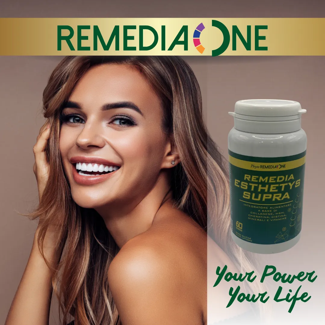 Ritrova la bellezza dall’interno con Remedia Esthetys Supra, un integratore alimentare completo che nutre e rinforza capelli, pelle e unghie.